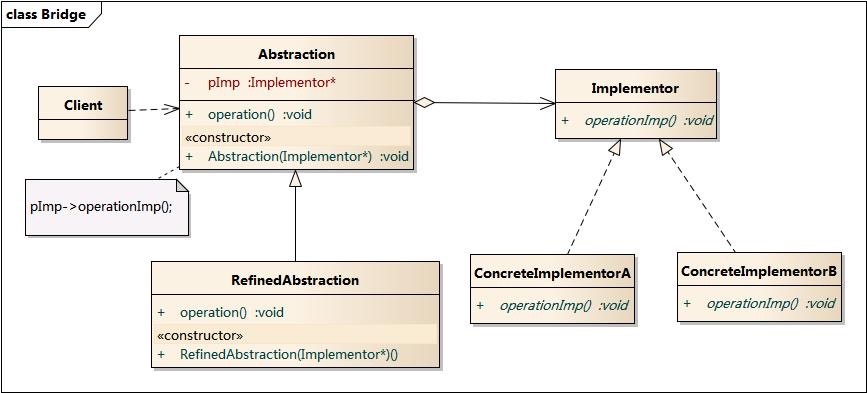 桥接模式(Bridge Pattern): 将抽象部分与它的实现部分分离, 使它们都可以独立地变化。它是一种对象结构型模式, 又称为柄体(Handle and Body)模式或接口(Interface)模式 任何多维度变化类或者说多个树状类之间的耦合都可以使用桥接模式来实现解耦。